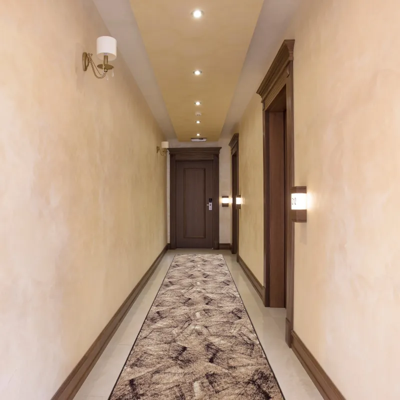 Beżowo-brązowy wzór inspirowany naturą i prostotą doskonale wpisuje się w aktualne trendy wnętrzarskie. Subtelna kolorystyka sprawia, że chodnik pasuje zarówno do jasnych, jak i ciemniejszych przestrzeni, tworząc spójną całość z resztą wystroju. Uniwersalny, nadaje się do biura, firmy a także do domu, sprawdzi się w przedpokoju, chroniąc podłoże przed uszkodzeniem, zabrudzeniami i wilgocią, must have w kuchni - zapewni stabilność podczas codziennych czynności.