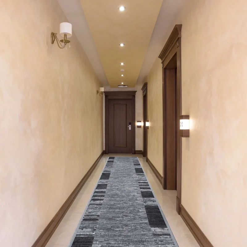 Chodnik posiada minimalistyczny wzór w kolorze szarym, z popielatymi dodatkami, świetnie sprawdzi się w przedpokoju, chroniąc podłogę przed piaskiem i wilgocią wnoszoną z zewnątrz, w kuchni, gdzie zapewni stabilność podczas gotowania, sprawdzi się także na schodach, zwiększając bezpieczeństwo poruszania się.