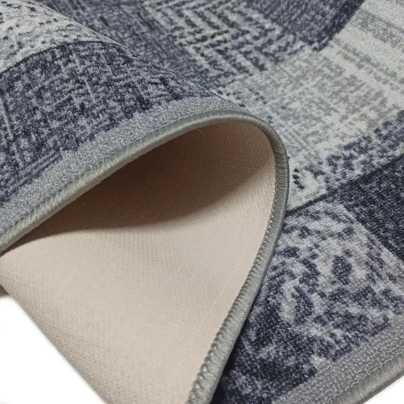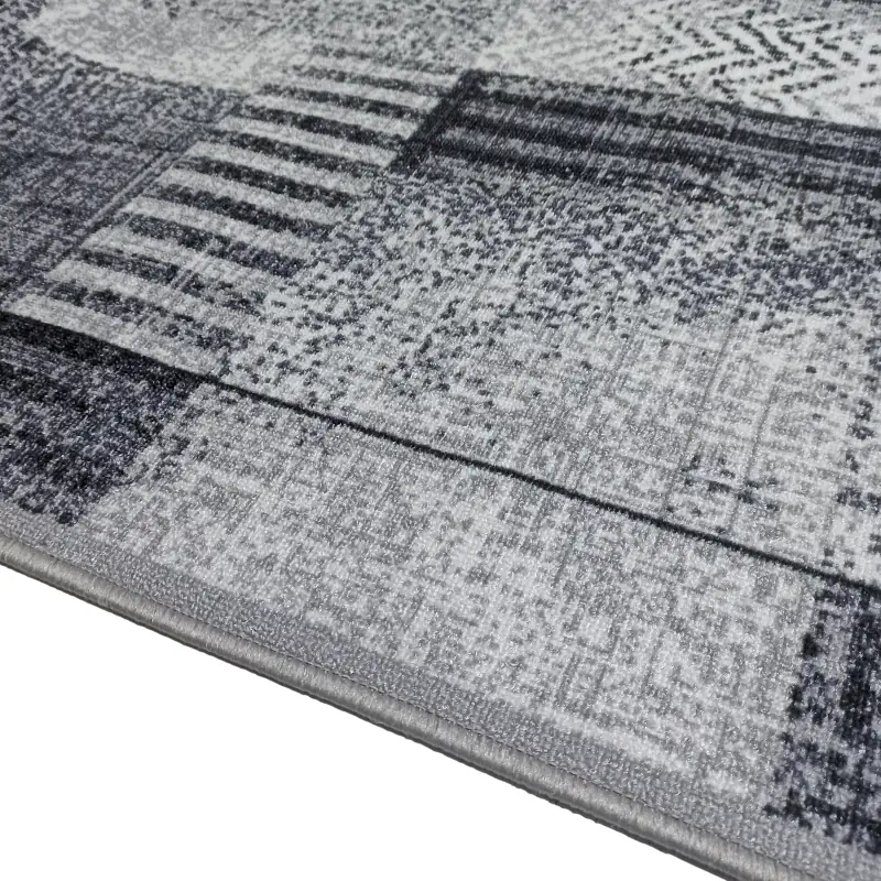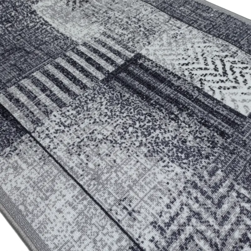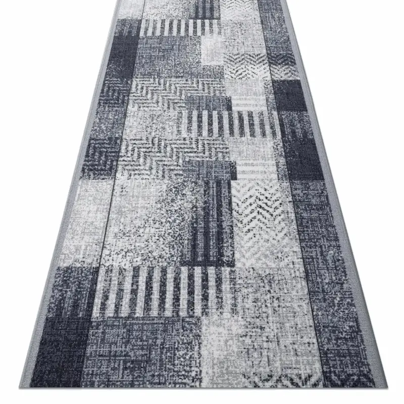 Chodnik posiada nowoczesny wzór w kolorze szarym z grafitowymi dodatkami, idealny do korytarzy, kuchni, przedpokojów czy schodów, gdzie liczy się zarówno estetyka, jak i funkcjonalność. Gumowy spód gwarantuje pewne przyleganie do podłoża, nawet w intensywnie użytkowanych przestrzeniach, chroni także podłogę przed zabrudzeniami i wilgocią, jednocześnie zapewniając wygodę chodzenia.