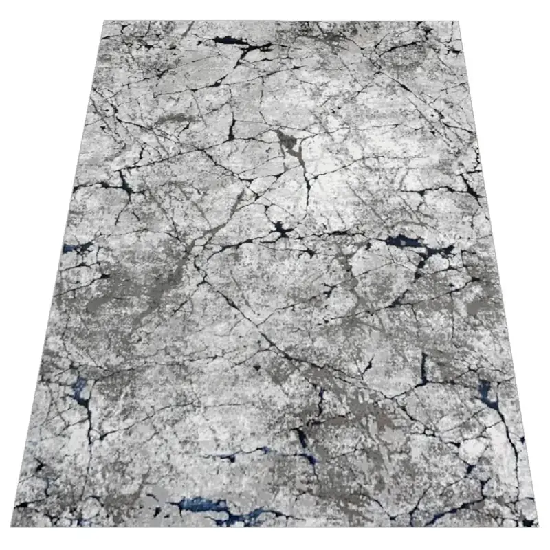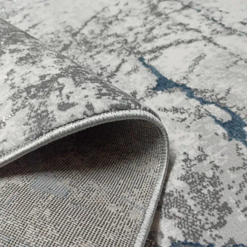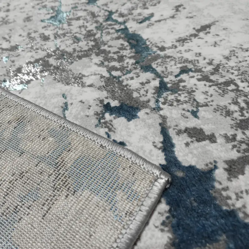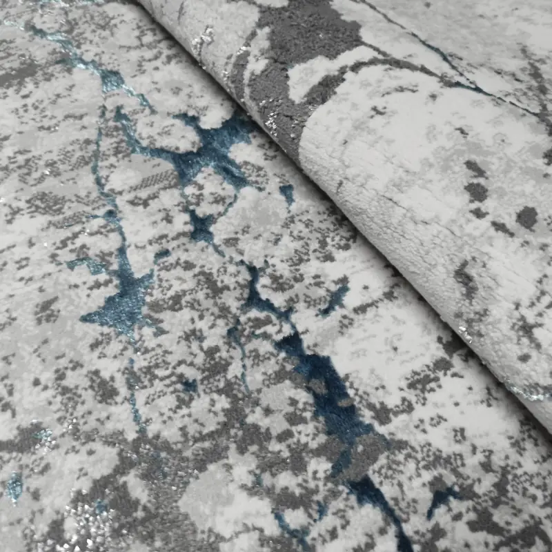 Dywan glamour Luna z błyszczącą nitką w kolorze szaro niebieskim i dwupoziomowym wzorem 3D inspirowanym marmurowym motywem kamienia wnosi do wnętrza odrobinę luksusu w nowoczesnym stylu. Ta stonowana, a zarazem wyrazista kolorystyka doskonale ożywi neutralne aranżacje lub dopełni przestrzeń w klimacie industrialnym i nowoczesnym.