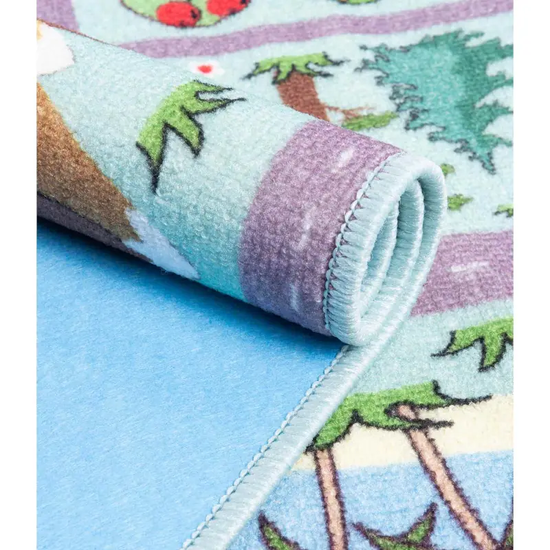 Dywan doskonale sprawdzi się w pokoju dziecka, przedszkolu czy sali zabaw. Dzięki starannie zaprojektowanemu wzorowi, pobudza kreatywność i rozwija orientację przestrzenną. Kolor morski dodaje wnętrzu świeżości.