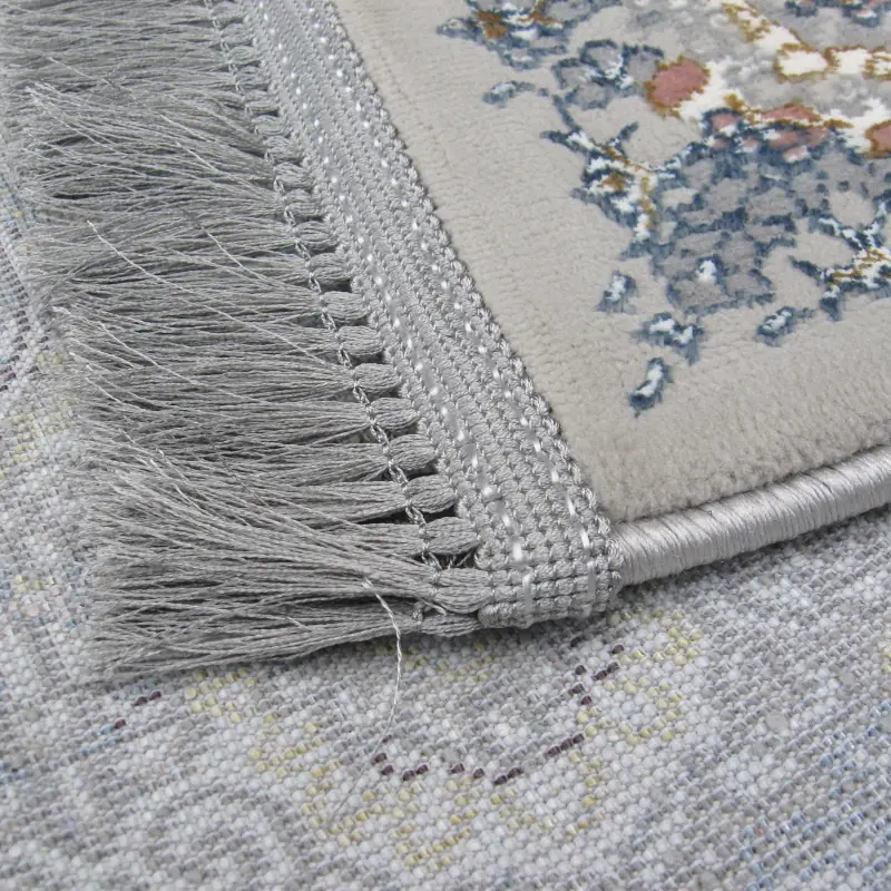 Ekskluzywny dywan Milan A005A łączy ponadczasowy wzór rozety z nowoczesnym, dyskretnym połyskiem nici, który subtelnie zmienia się w zależności od kąta padania światła. Kolorystyka szaro‑beżowa zapewnia łatwe dopasowanie do różnych stylów wnętrz - od klasycznego po skandynawski lub nowoczesny glamour. Gęste, mięsiste runo gwarantuje komfort pod stopami i dobrą izolację akustyczną, a staranne wykończenie delikatnymi frędzlami podkreśla rzemieślniczy charakter produktu. Dywan odporny na codzienne użytkowanie, łatwy w pielęgnacji, przeznaczony dla osób ceniących połączenie tradycji i luksusu.