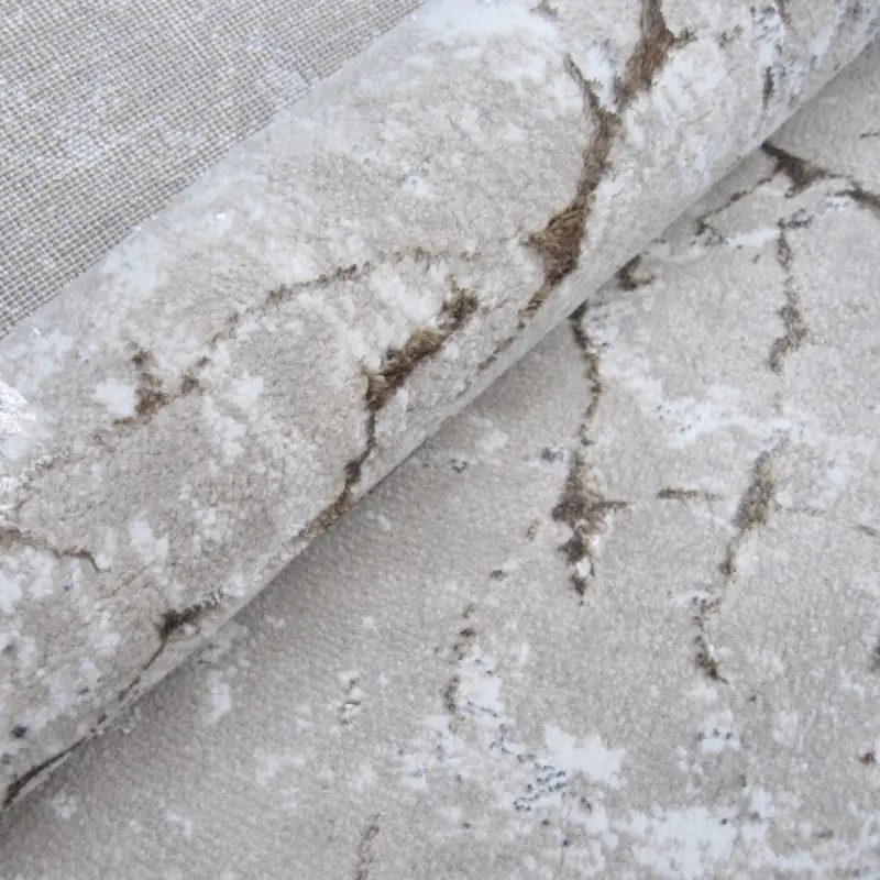 Niech Twój salon lub sypialnia zyska nowy wymiar z okrągłym dywanem glamour Luna z błyszczącą nitką i strukturalnym wzorem inspirowanym marmurowym motywem kamienia. Jego opływowy kształt znakomicie zmiękcza i ociepla przestrzeń a wyjątkowy design dywanu wprowadza do wnętrza odrobinę naturalnego stylu. Harmonijna beżowa kolorystyka sprawia, że dywan doskonale komponuje się zarówno z jasnymi, jak i ciemniejszymi aranżacjami. Krótkie włosie ułatwia pielęgnację a błyszcząca nitka nadaje niezwykłego charakteru.