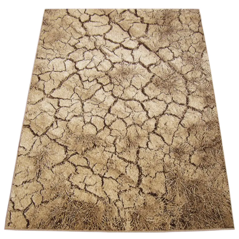 Nowoczesny beżowy dywan do salonu z wyjątkowym wzorem imitującym spękaną ziemię. To wyjątkowa dekoracja podłogi, która odmieni wystrój każdego wnętrza. Jego specjalnie zaprojektowany design inspirowany naturalnym pięknem przyciąga uwagę, a jednocześnie pozostaje stonowany i elegancki.