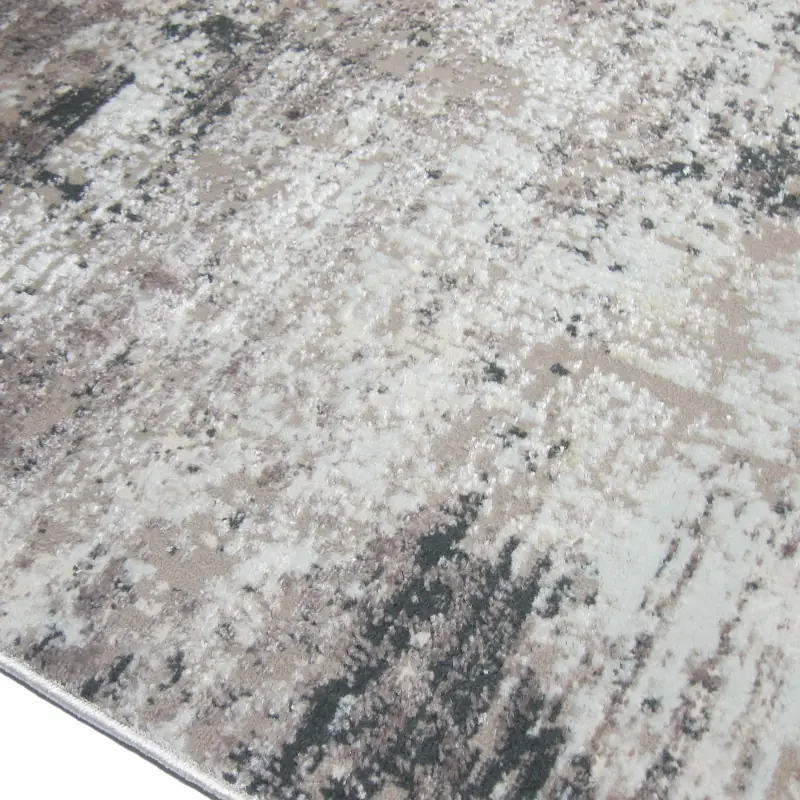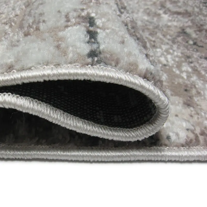 Odkryj wyjątkowy styl, jaki wniesie do Twojego wnętrza nowoczesny dywan beżowy z abstrakcyjnym wzorem z dodatkiem bieli i antracytu. Harmonijne połączenie barw sprawia, że dywan staje się nie tylko praktyczny, ale również designerski, dzięki czemu podkreśli charakter każdego pomieszczenia. Dywan posiada dwupoziomową, lekko połyskującą strukturę, która doskonale wypełni wystrój pomieszczeń w stylu glamour.