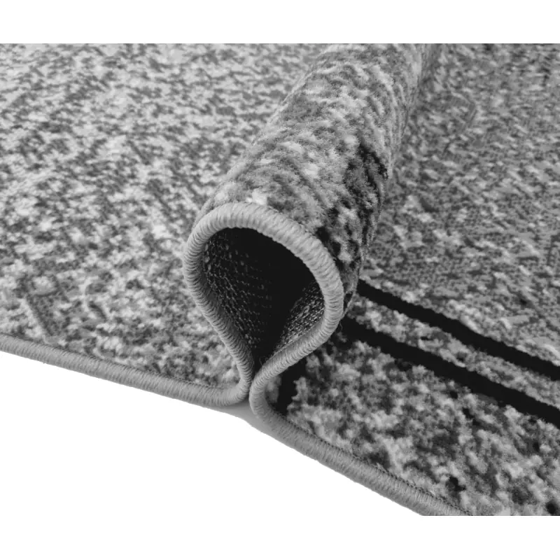 Krótkie włosie dywanu jest praktyczne i łatwe w pielęgnacji - nie gromadzi nadmiernie kurzu, nie odkształca się i świetnie sprawdza się w pomieszczeniach z ogrzewaniem podłogowym. Dzięki temu dywan jest idealnym wyborem dla rodzin z dziećmi, właścicieli zwierząt czy alergików. Neutralna paleta szarości sprawia, że dywan łatwo dopasujesz do mebli i dodatków w różnych kolorach. Wzór melanż z kreskami dodatkowo maskuje drobne zabrudzenia, co czyni go jeszcze bardziej funkcjonalnym.