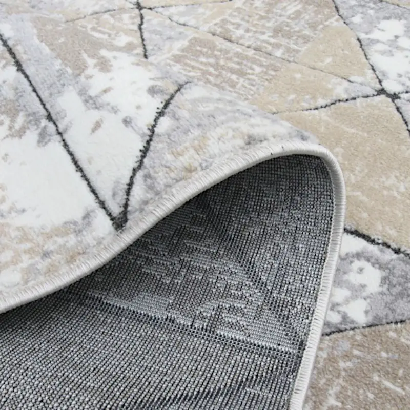 Uniwersalność szaro-beżowych tonów pozwala na dowolne łączenie z meblami i dodatkami - od naturalnego drewna, przez metalowe konstrukcje, aż po kolorowe tkaniny. Geometryczny motyw rombów wprowadza do wnętrza wyrafinowany akcent, nie dominując jednak pozostałych elementów wystroju. To idealne rozwiązanie zarówno pod stolik kawowy w salonie, jak i pod biurko w domowym gabinecie.