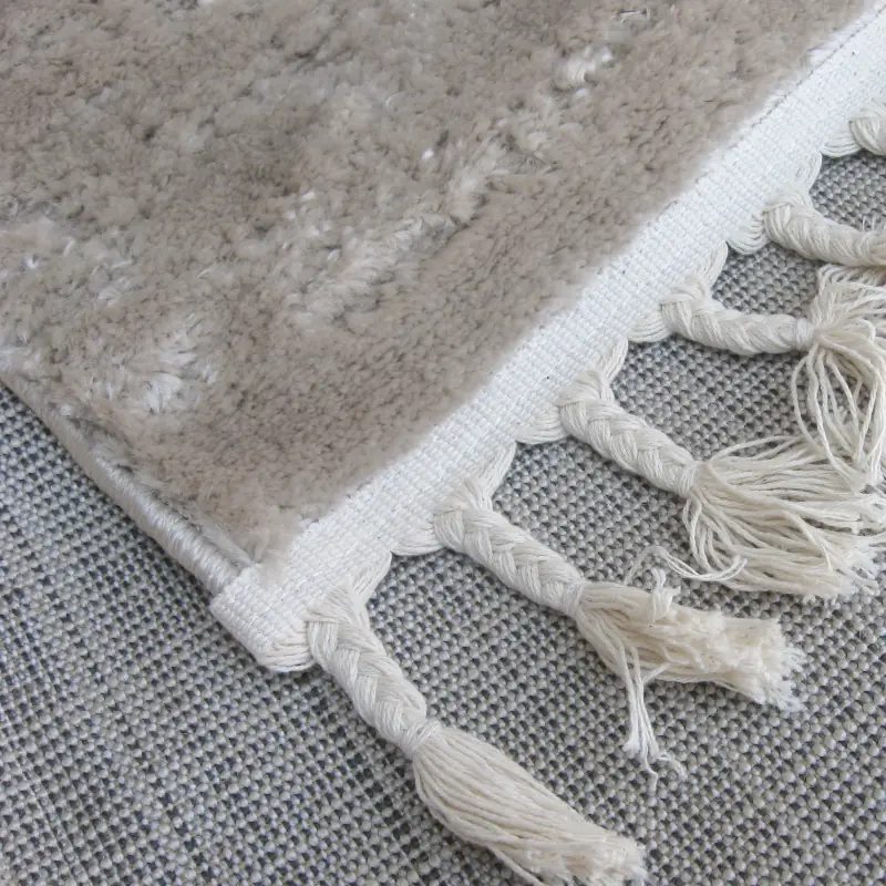 Dywan boho beżowy Siena to połączenie przytulności z artystycznym sznytem. Miękkie włosie typu shaggy otula stopy, a subtelnie połyskujące nitki odbijają światło, tworząc na powierzchni delikatne refleksy. Ręcznie wykończone frędzle na krótszych bokach dodają lekkości i podkreślają charakter dywanu, który stanie się centralnym punktem każdego wnętrza.
