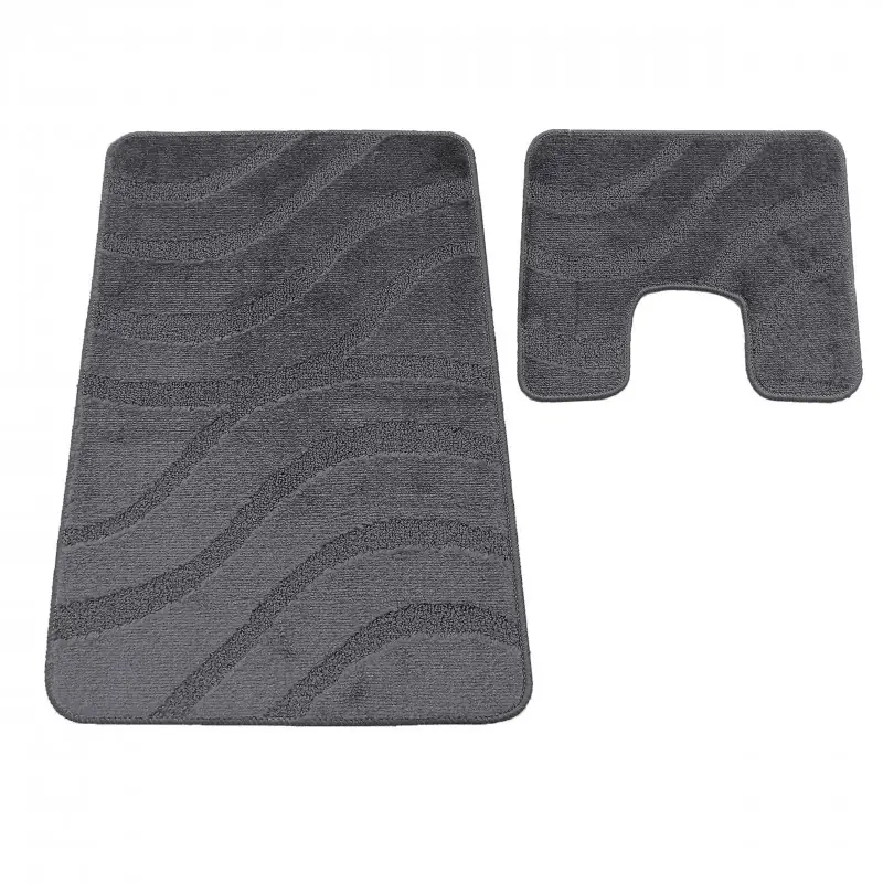 Wykonane z wysokiej jakości, miękkiego polipropylenu, który zapewnia wyjątkowy komfort po wyjściu z kąpieli lub spod prysznica. Gęsta struktura materiału skutecznie chłonie wodę, dzięki czemu podłoga pozostaje sucha i bezpieczna. Dywaniki są łatwe w pielęgnacji, można je prać w pralce w 30°C, co pozwoli na szybkie odświeżenie wyglądu, kształtu, koloru i miękkości. Praktyczny, ciemno szary kolor sprawi, że dywaniki nadadzą pomieszczeniu schludnego wyglądu.