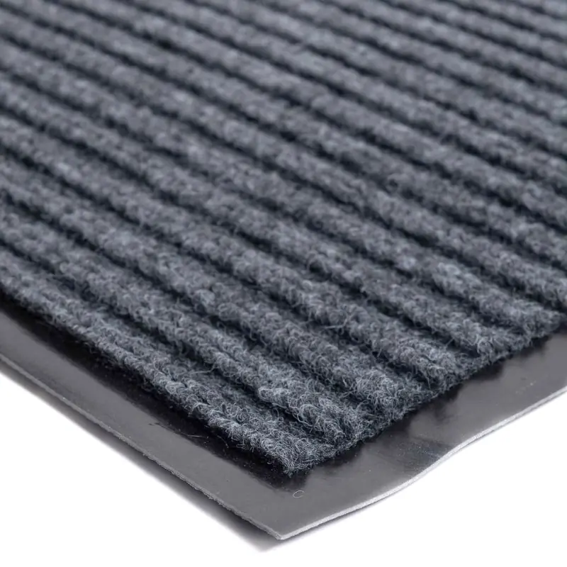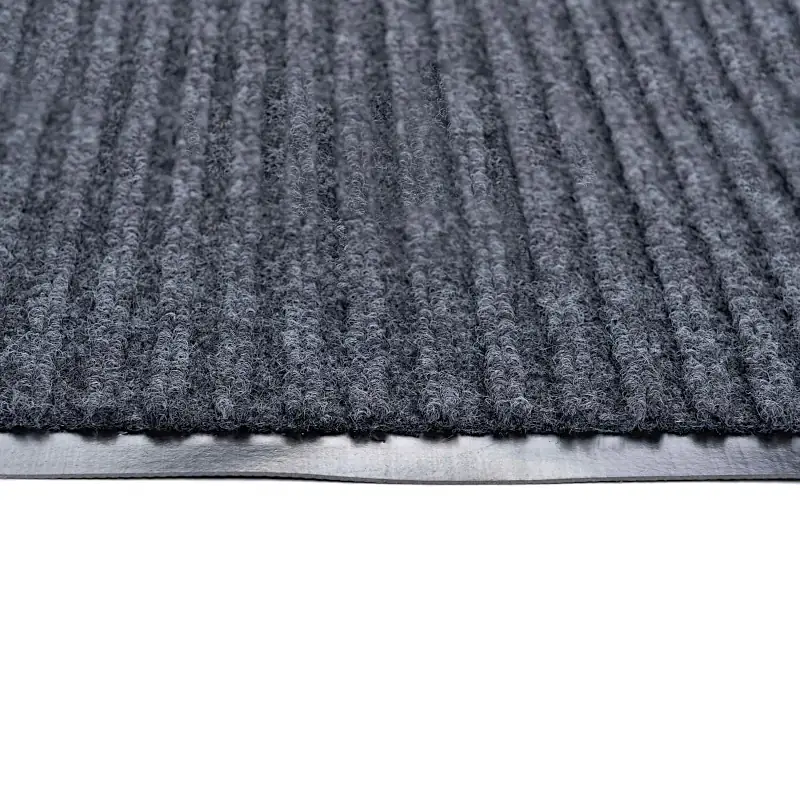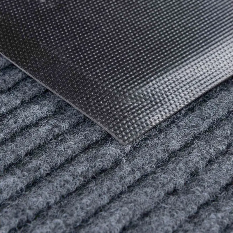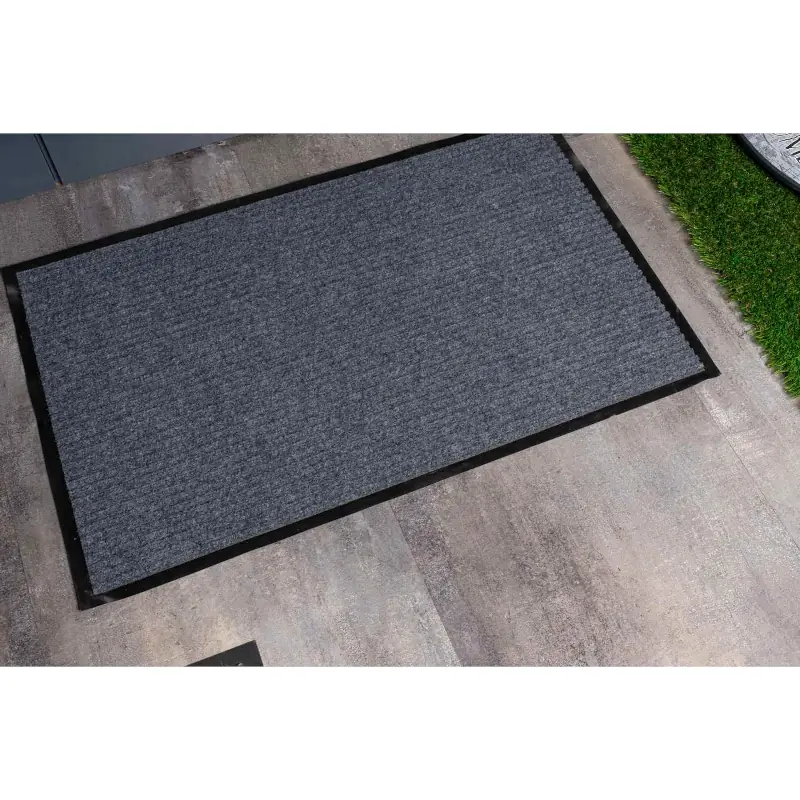 Szara wycieraczka wejściowa z gęstym, prążkowanym runem, które świetnie zbiera kurz, piasek i wilgoć, chroniąc podłogę przed zabrudzeniem. Spód z PVC gwarantuje stabilne ułożenie na podłodze i ułatwia użytkowanie przy intensywnym ruchu. Niska wysokość runa sprawia, że mata nie blokuje drzwi i nadaje się do progów o ograniczonej przestrzeni. Szary kolor dobrze komponuje się z różnymi aranżacjami, od nowoczesnych po klasyczne, a dyskretne prążki dodają subtelnej faktury wejściu.