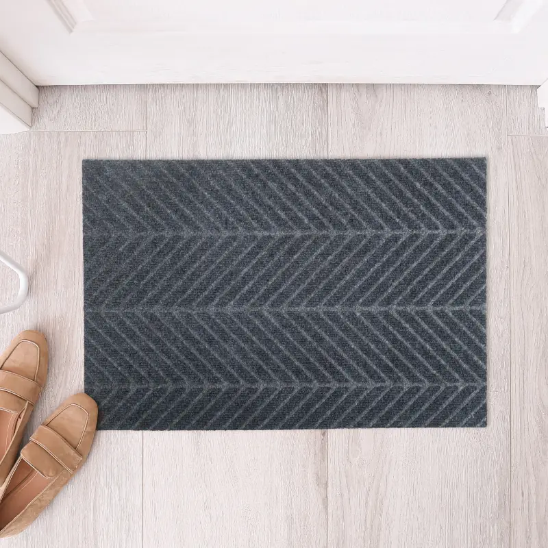 Z naszą wycieraczką dodasz swojemu wejściu elegancji i funkcjonalności. Jej modny wzór w jodełkę w stonowanym szarym kolorze świetnie komponuje się z nowoczesnymi aranżacjami, a gęste runo tekstylne skutecznie zatrzymuje brud i wilgoć, chroniąc wnętrze przed zabrudzeniami. Wycieraczka jest niezwykle praktyczna, estetyczna i co najważniejsze - nie przemaka.